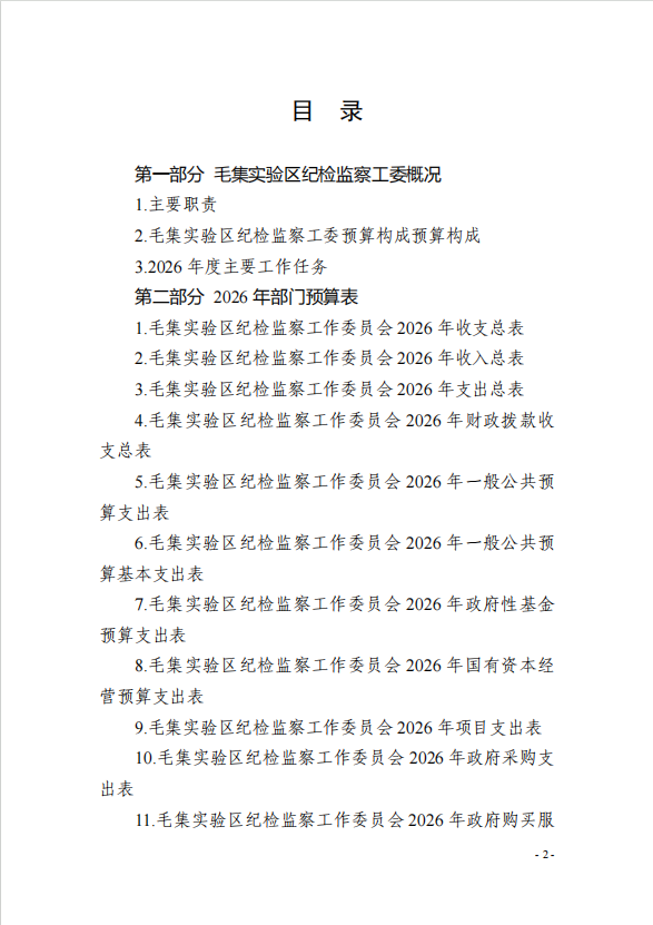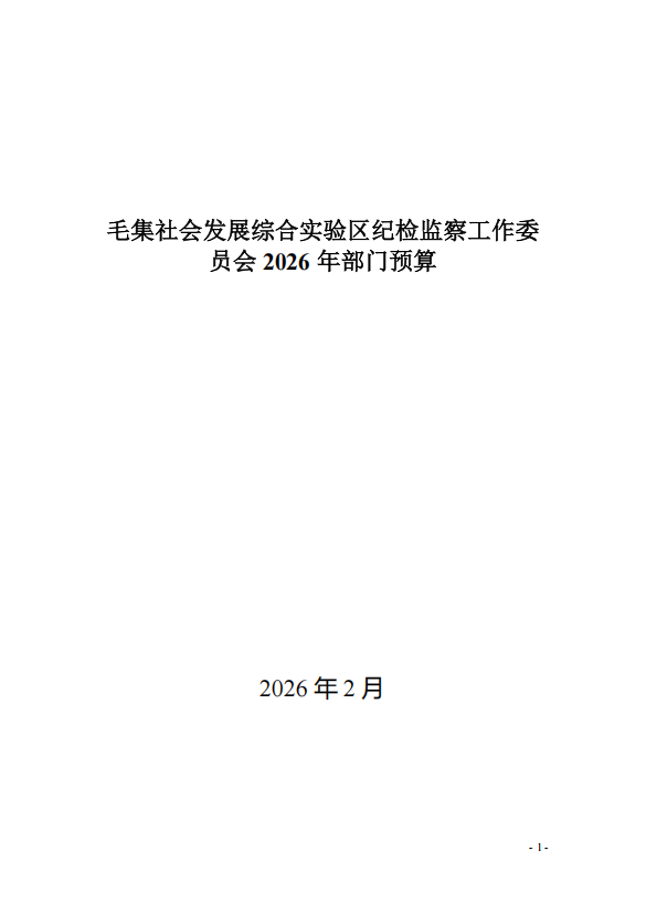 毛集社会发展综合实验区纪检监察工作委员会2026年部门预算公开